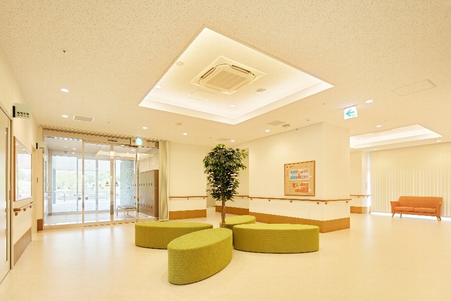 全体的な配置は,1階に事務所,厨房などの管理部門や近隣との交流を促す娯楽室,2階から6階を1フロア2ユニットの居室階とした。ユニット間を管理部門で繋ぎ混むことで各ユニットの介護人の手助けを促すことができる。